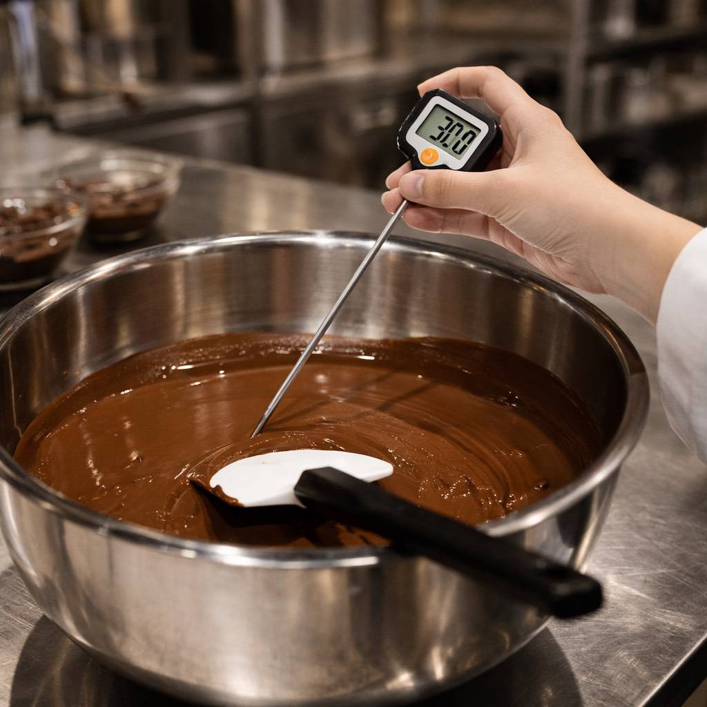 Deepening technique in tempering, truffles, bonbons, cocoa drinks and frozen desserts.